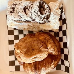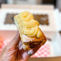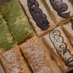 The cream puffs are absolutely the way to go! They sell out quick but you can call ahead to make an order. I enjoyed the ube and vanilla ones. They are cream filled but I love the chantilly top. Chantilly is my favorite and an ube chantilly is just to die for. They do validate parking so you'll be all good to pop into the parking lot and grab and go.